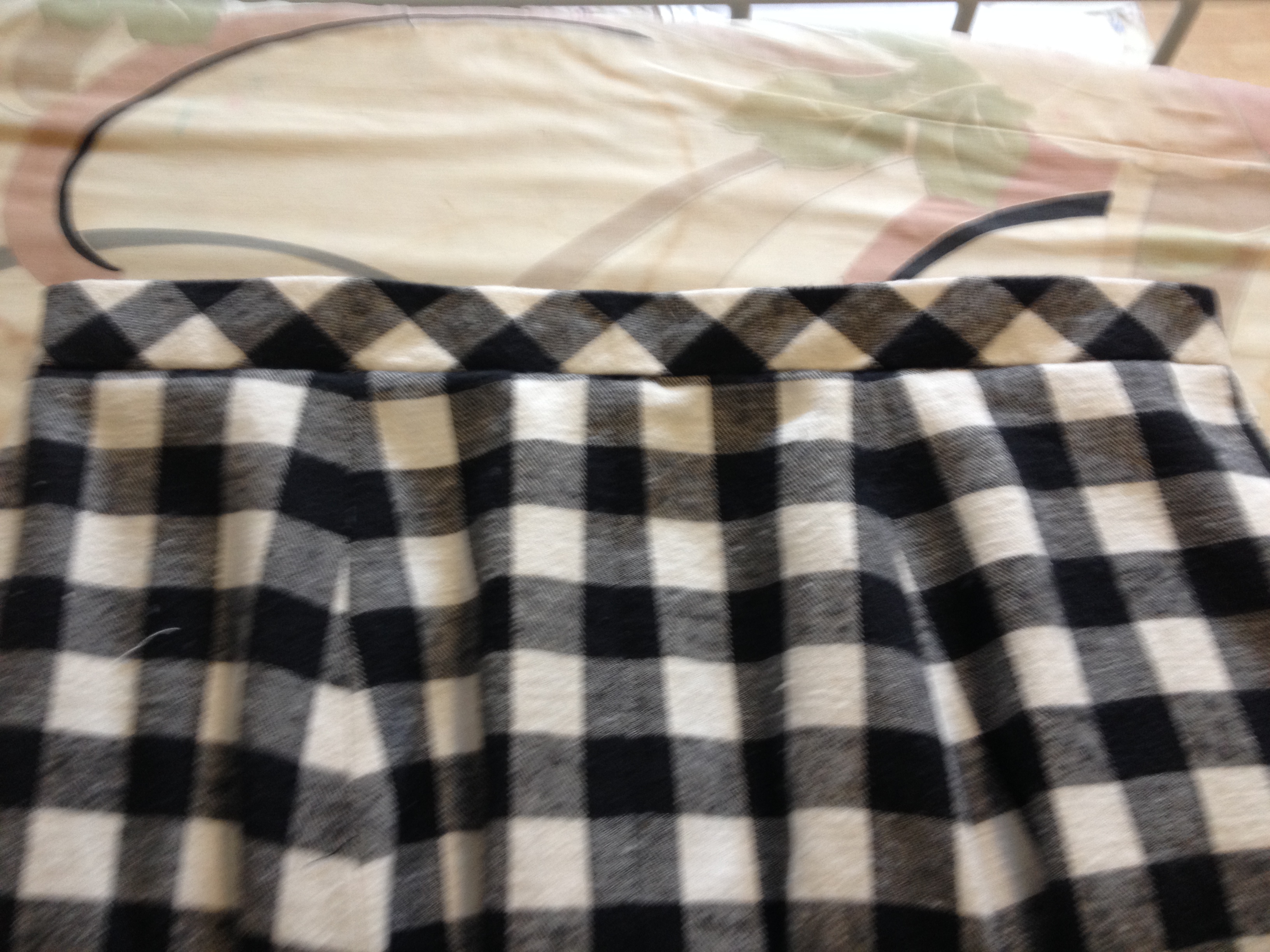 Because the check on the skirt was so much larger, I had a much easier time getting the fabric folded straight. I spent a lot of time laying out my pieces and using fold lines and calculating seam allowance in order to have my check lay the way I wanted them to. You’ll notice that the middle front seam starts in the middle of a black check and the pattern looks continuous. This took some math to place, but I’m really glad I too the time.