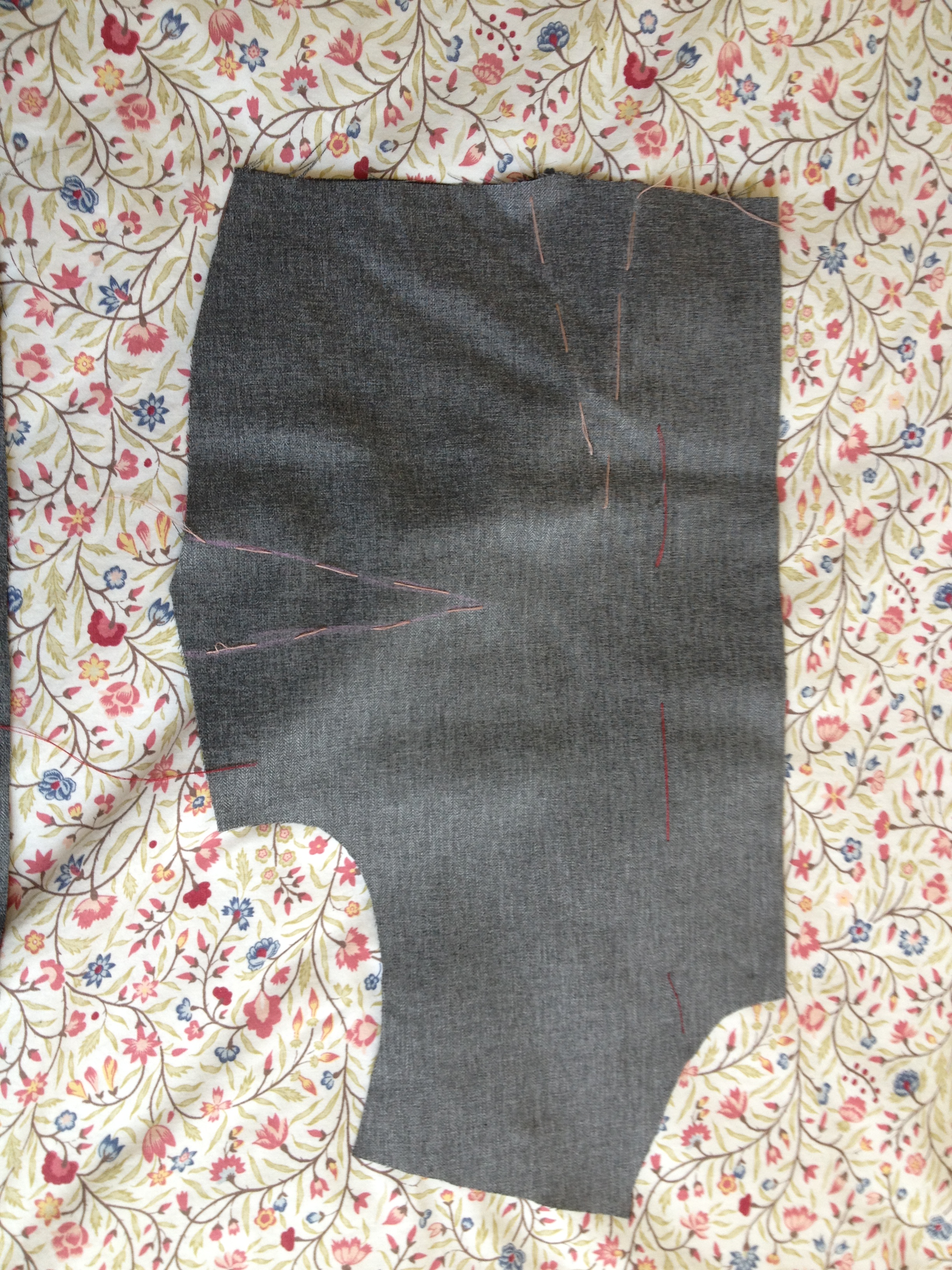 Lastly, I took the time to not only mark my darts now – I generally wait until I’m ready to sew them and just sort of hold the pattern piece up to the fabric and mark with chalk. Not only that, but I traced it in thread! One of the biggest lessons I’ve learned (and continue to learn), is that the more time I spend getting everything ready and being thorough before I start assembling pieces, the less time I agonize over fixing things and getting fit right later.