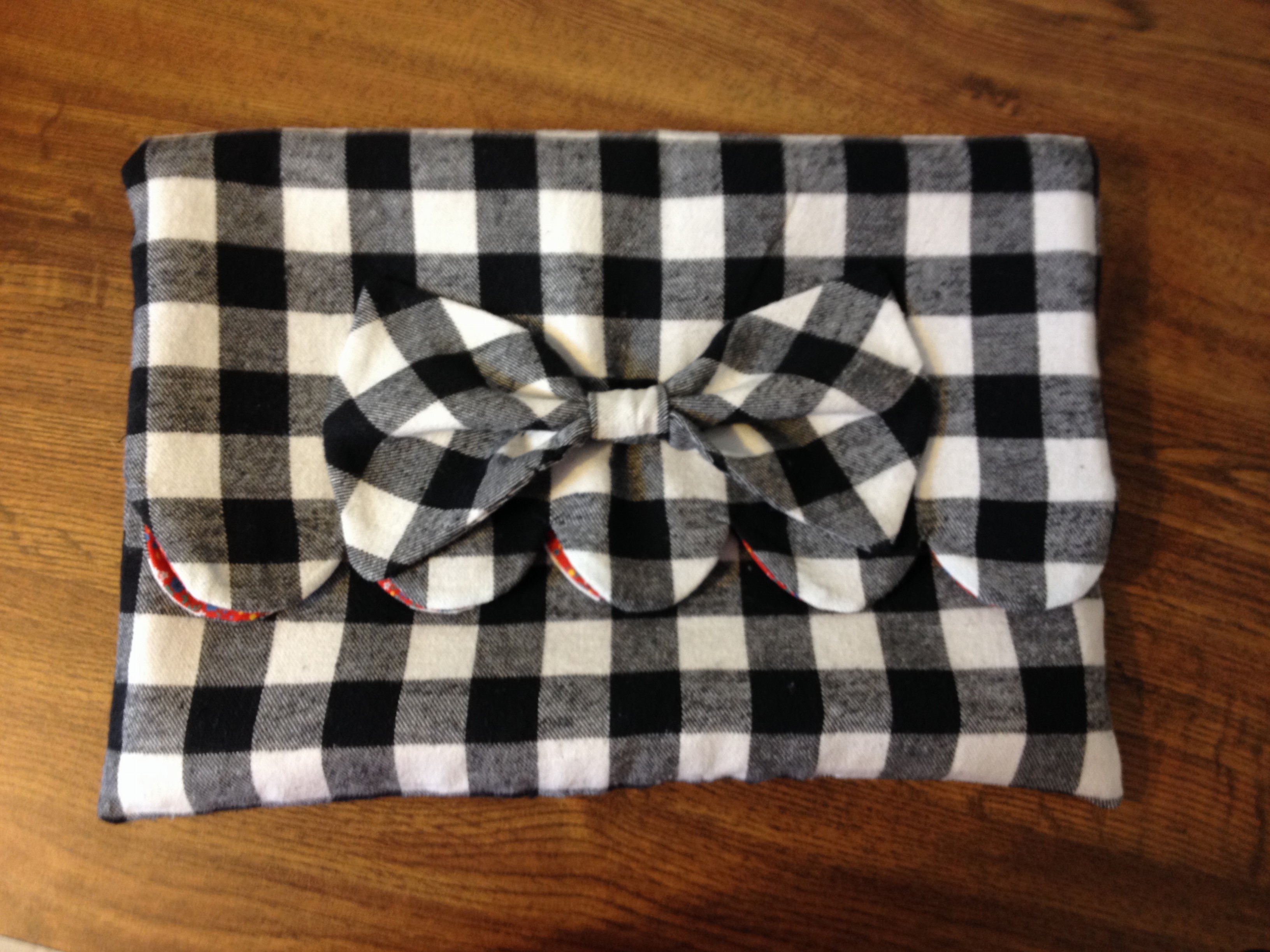 You have several options to use your bow – I sewed this one to a pin, so I could attach it to this clutch I made (Tutorial to coming soon!). You can also slide a headband or bobby pin through the band and wear it in your hair. You can even sew it to a hair elastic to spruce up your pony.