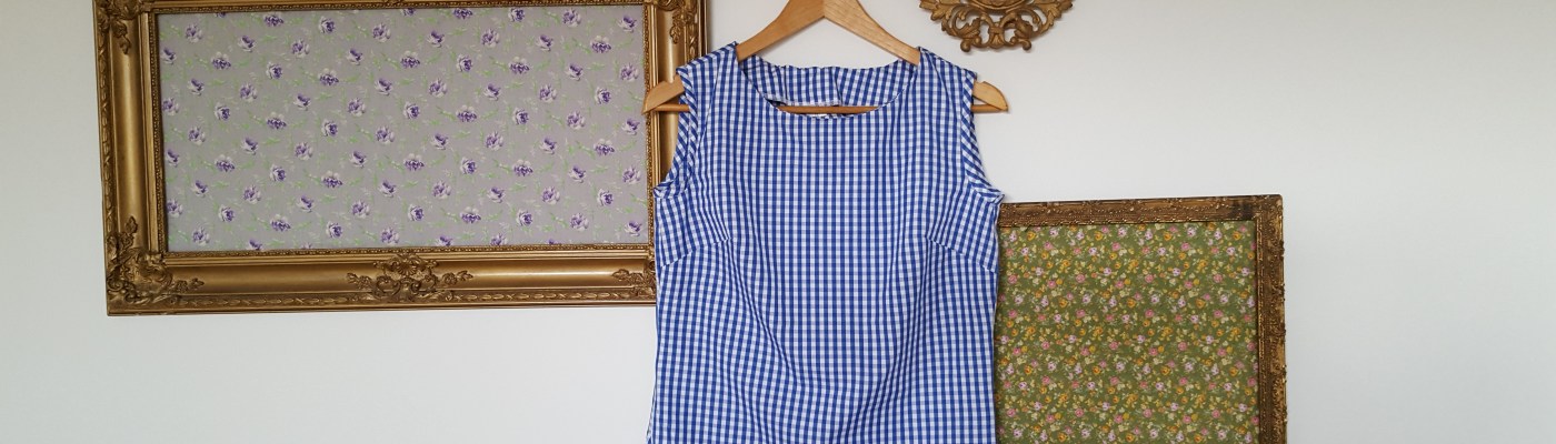 I knew I wanted something a little bit longer in the back with slight slits at the side. I used a tank I own to decide what kind of curve I wanted and the length difference. Since I was dealing with a curved hem and I wanted to keep things as simple as possible, I bound the bottom in bias as well. Also, I love how gingham looks on the bias.