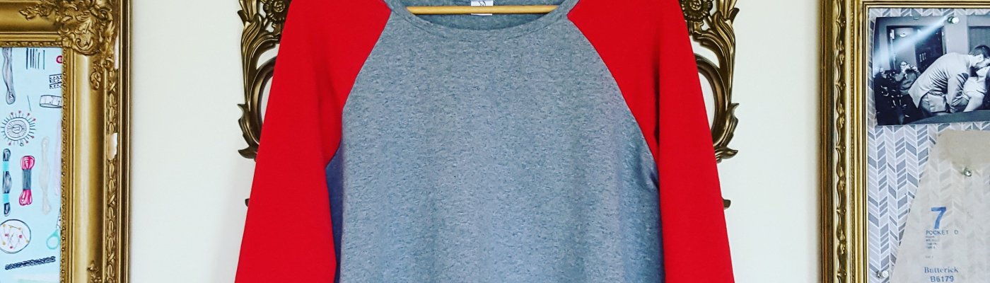 I grabbed some grey and red jersey I had left over from the babywearing hoodie I made my husband earlier this year. I have a hard time throwing out scraps and generally keep even the tiniest pieces thinking that some day I will make bias tape or line a pocket with it. I’d been hoarding knits thinking I would make my own undies eventually, but I am so much more impressed with this top! It was satisfying to use up all that red and only have snippets to throw away.