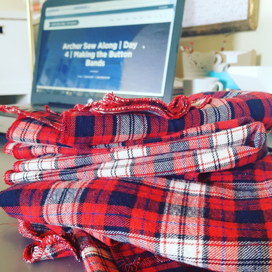 What I did: I plan to head out later today to get thread, but since there is not too much I can do, I spent the morning going through the Archer Button Up sew-along posts. There were a couple of new things for me, but mostly it was a good refresher. I generally hate long sleeved blouses or button ups, so I have shockingly never made a cuff or sleeve placket. The step-by-step visual instructions were super helpful and I feel pretty confident I won’t mess them up. But then, in the afternoon, I couldn’t resist the siren call of my sewing table, so I took that new thread, wound it into bobbins (yes, two.) and started sewing. I decided I would try out the sew-along and got the button bands completed.