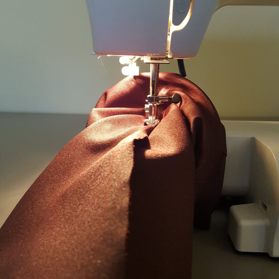 Next, I basted it to the sleeve lining with right sides together using a straight stitch since the lining does not stretch. It is easiest if you stretch the cuff (inside out) over the the sleeve lining (right side out) and stretch the cuff to fit the sleeve. The cuff gets sandwiched between the lining and the outer fabric when you bag the lining and so when you turn it right side out, your cuff will pop out!