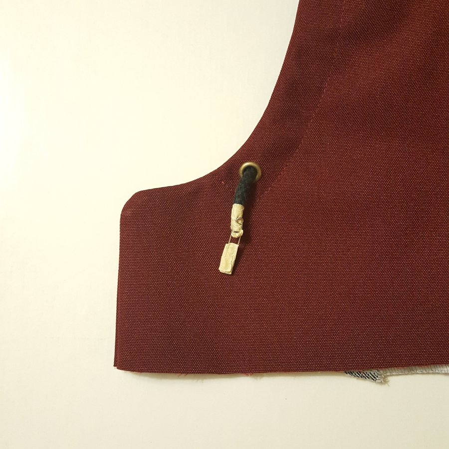 I also varied from the pattern a bit on the hood. I decided I needed a drawstring on my hood. Fall in Ottawa is cold, wet and windy, and a hood that you can secure around your face is 100 per cent necessary. I placed the opening for my drawstring just below the notch at the front of the hood and centered it withing the 1-inch top-stitching I planned to use as the casing for the drawstring. I chose to sew 1 inch from the edge to that I would have just enough room to get my presser foot past the grommet when sewing by.