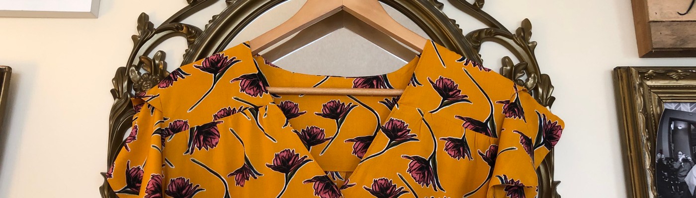 The fabric is from Fabrications and I am really impressed I actually made something out of a timely fabric that you can actually still buy. (I am a habitual long-planner and sew most things after a year or more on my stash.) This stuff is a mustard viscose poplin that only cost $6.99 per half metre but is PERFECT for this pattern. You all know I love yellow, but I’ve been focussing more on soft neutrals lately, so this was really exciting to work with. It washes well, presses nicely and isn’t sheer. It wrinkles a fair amount when your hot, pregnant bum sits on it for over an hour, but I can deal with that.