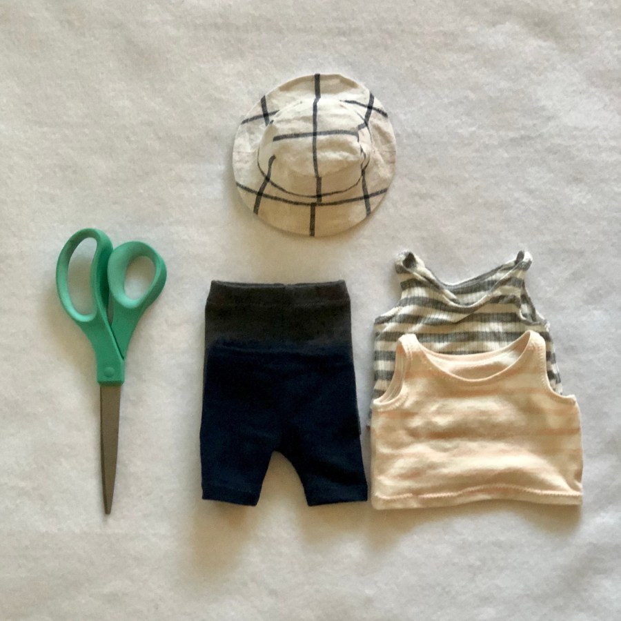 For Christmas, I made my daughter and her baby doll matching Geraniums and my daughter recently realized that she had the same shirt in her drawer as her baby was wearing. Despite the top being too small and too hot for June, it’s the first thing she picks out of her drawer. While making C’s summer capsule out of my scraps, I used the even smaller scraps to make her baby The. Same. Clothes.