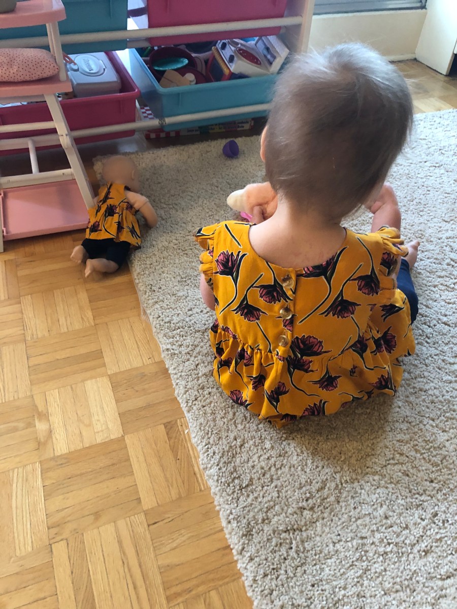 So far, my kid isn’t overly hyped about their matching wardrobes but she gets it. I, however, derive great pleasure from switching out baby’s clothes on occasion to match my daughter’s.