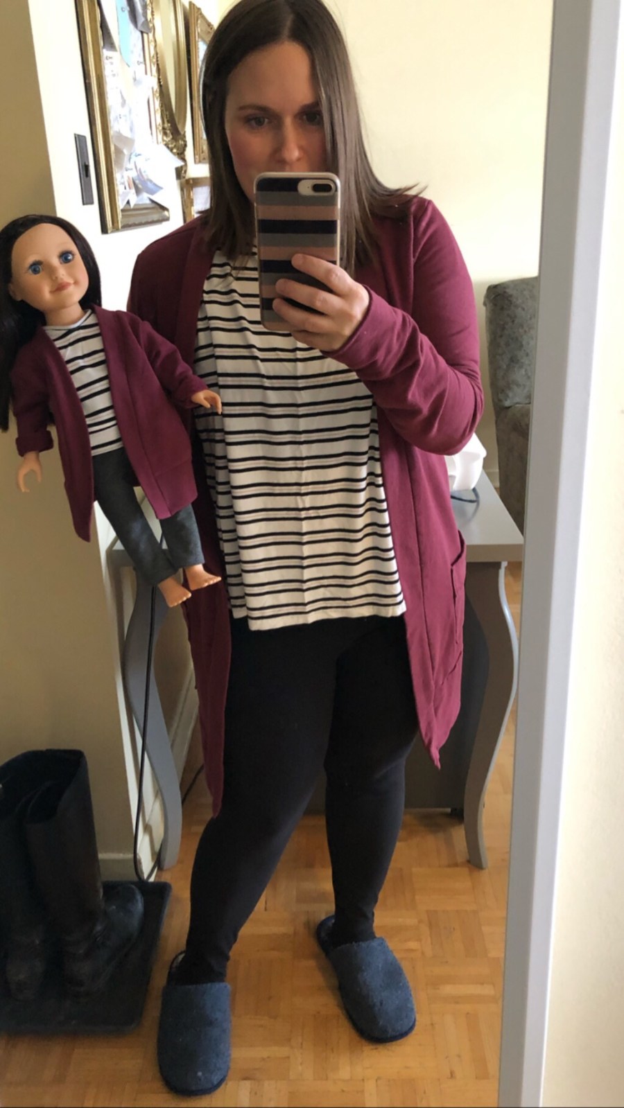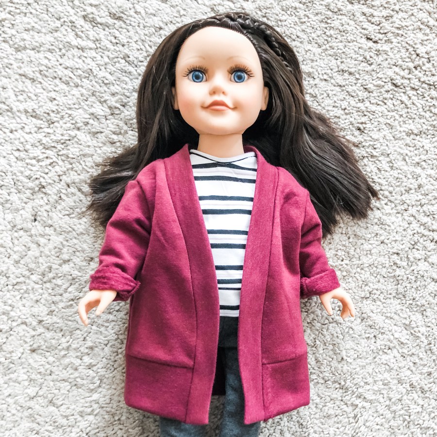 I didn’t have time to make matching clothes for my daughter this time, but I wanted to make a few things to replace the plaid mini skirt and fuscia bomber jacket it came with. The awesome thing about 18-inch dolls is that the internet is full of free patterns for their clothes. You can check out my Pinterest board if you’re interested in falling down this very fun rabbit hole.