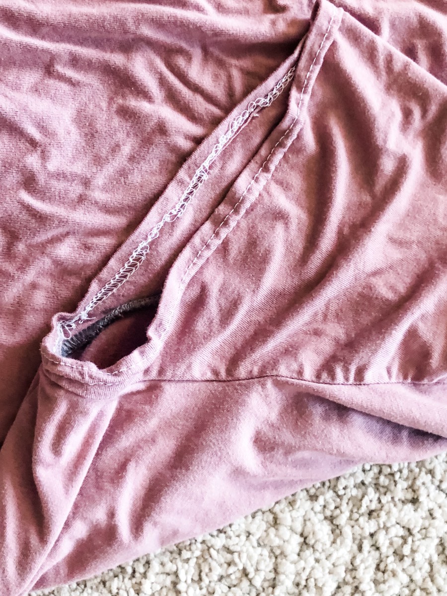 I shortened the shirt my standard 1.5 inches, but still find it hits at the wrong spot. It dips too low in the front still, but comes up quite high on the sides and shows a bit of skin when I move. These seams also popped at the sides. I maybe should have used wooly nylon thread, but I also just think that the rounded hem couldn’t take all the movement that happens during sleep.