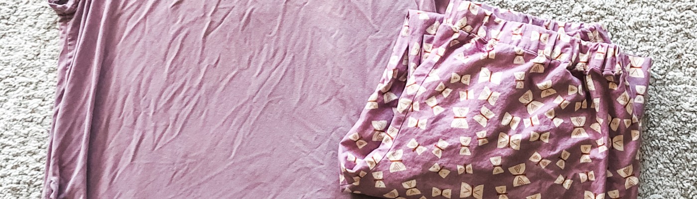 You will recognize the fabric from the unicorn hoodies I made and also as leggings for my daughter’s doll. I somehow bought way too much, but loved the colour so it wasn’t a problem at all. It also magically matched the pyjama pants I made in the fall so I figure this was the perfect opportunity to finally make a dedicated sleeping shirt.