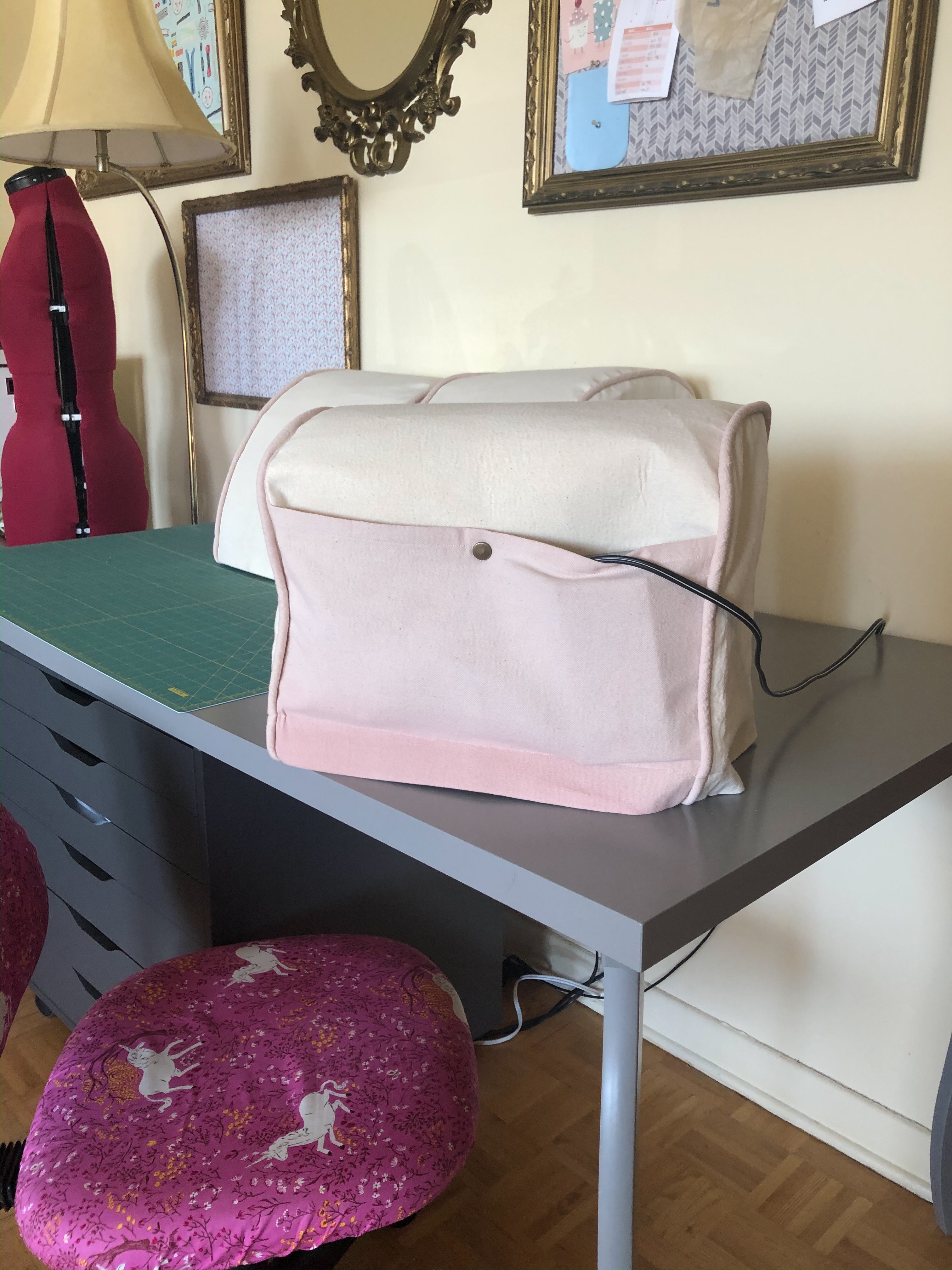 What the opposite of a labour of love? That’s definitely what was going on with these machine covers. By the end I was basically hate-sewing the dang things. I don’t think I’ve made anything quite so messy insides in a very, very long time. In any case, here goes!