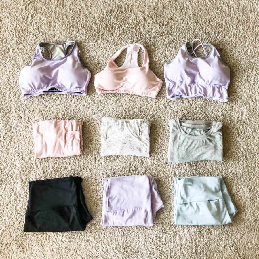 I already had two tanks and two sets of leggings that I was already using for yoga but didn’t really have any sports bras I liked. I wanted three complete outfits as I do yoga almost every day and figured I could wear each outfit twice for yoga between washes. When I create a capsule wardrobe, I always plan for a week’s worth of clothes.