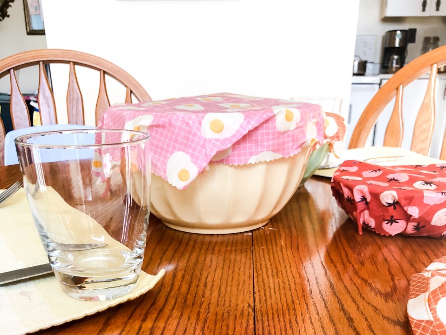 - Cons: Pretty messy. I had a hard time holding the wet wrap up long enough to drip aaaaallll the excess off before moving it to my drying rack. I did this on our balcony and definitely had a bunch of wax drips. This is also the hardest to control the amount of wax on your wrap. Mine are pretty thick in places.
